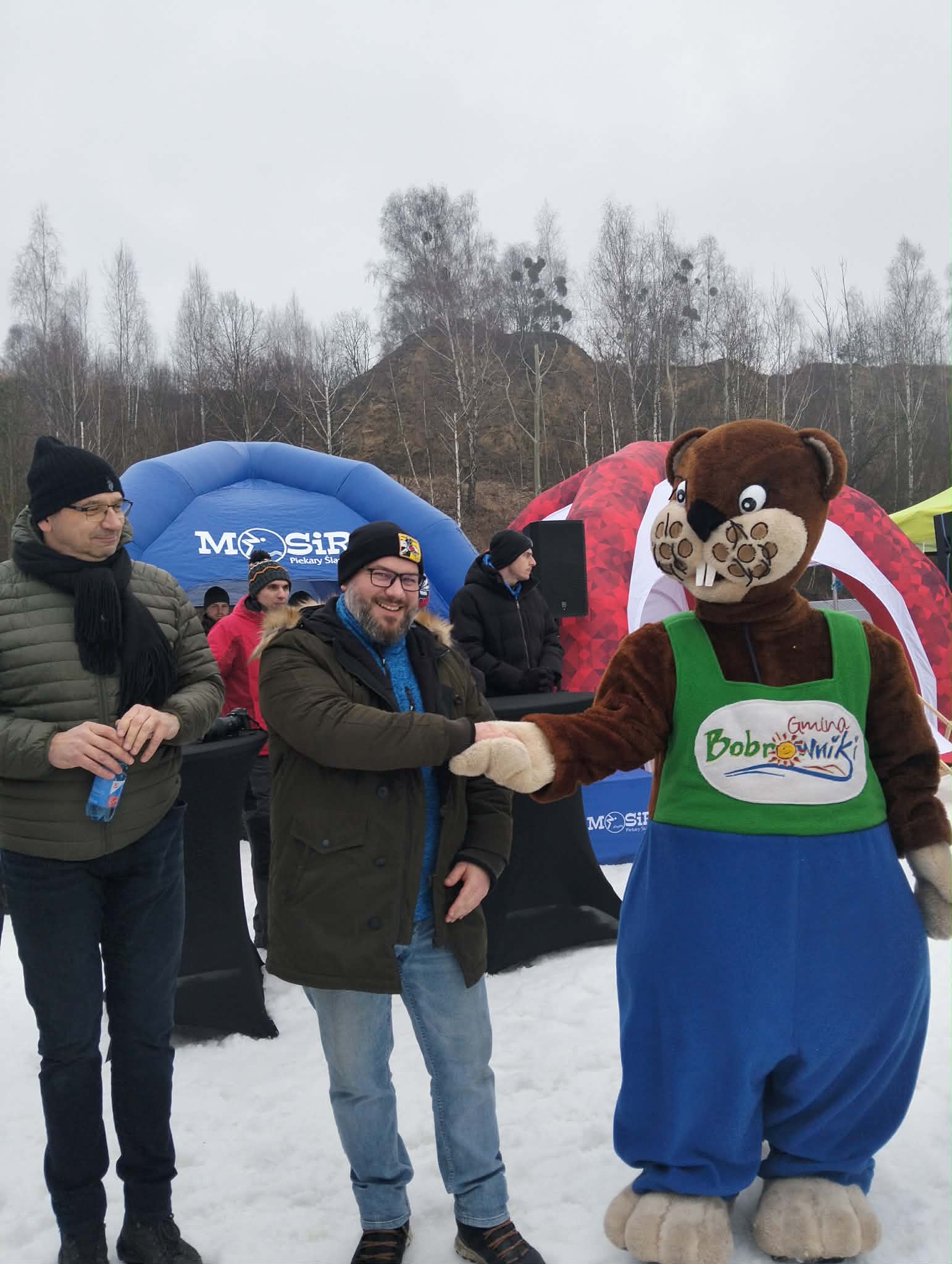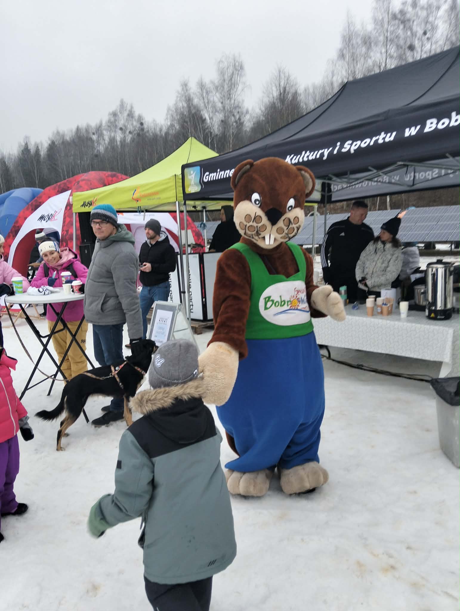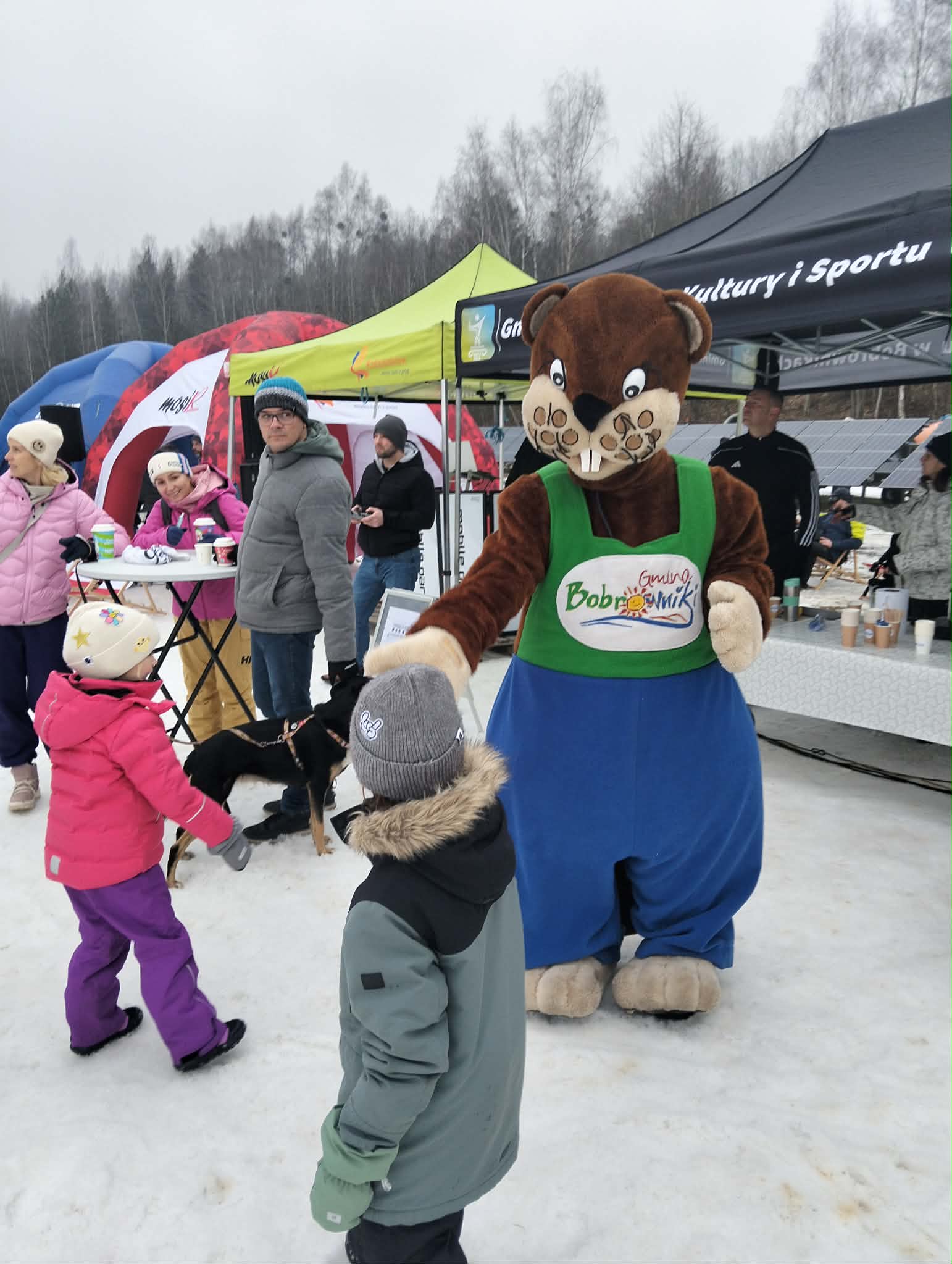 A nasz Gminny Boberek robił furorę i dopingował uczestników! Wszędzie było go pełno! Trochę zmarznięci, ale jesteśmy szczęśliwi!