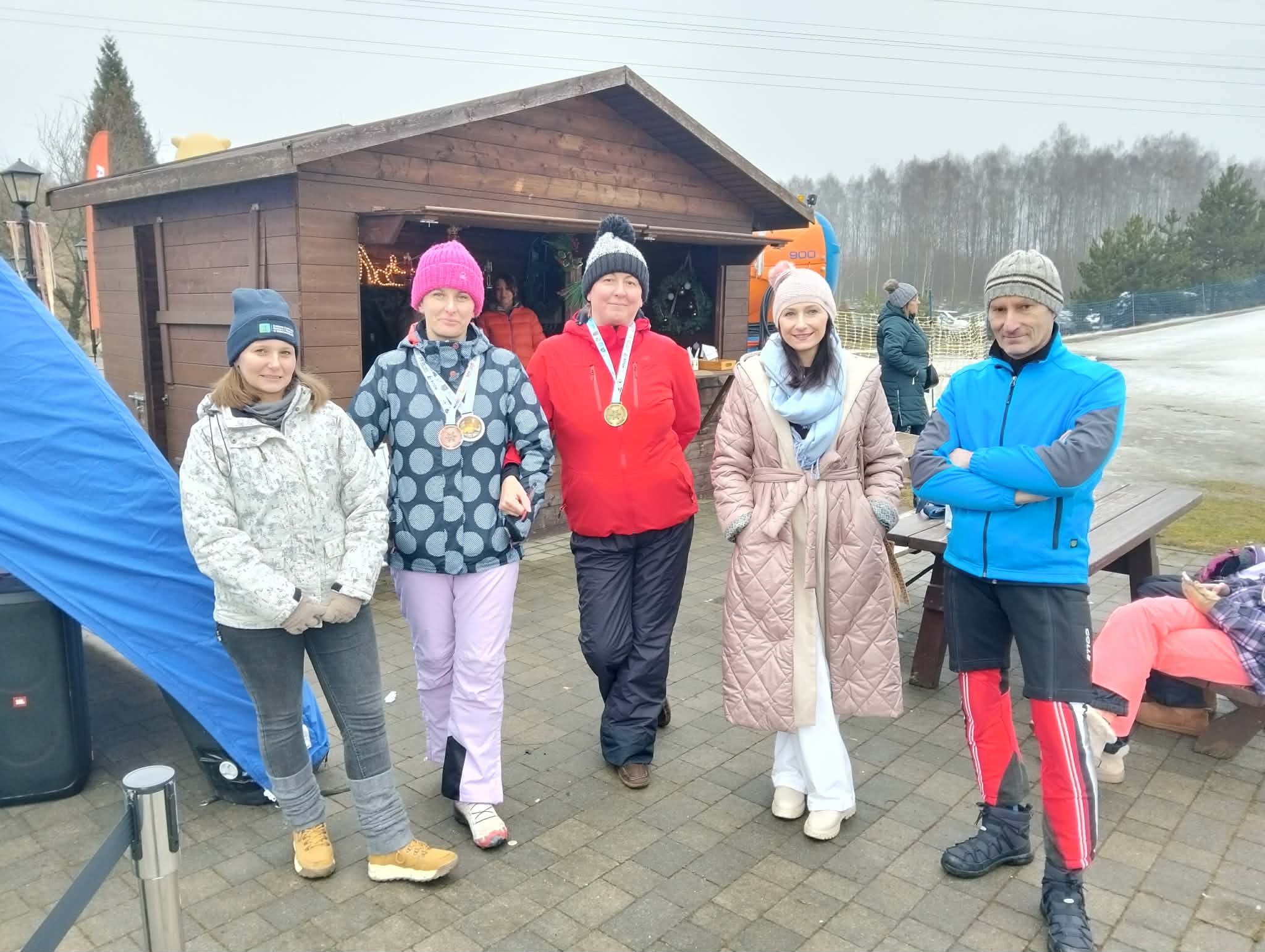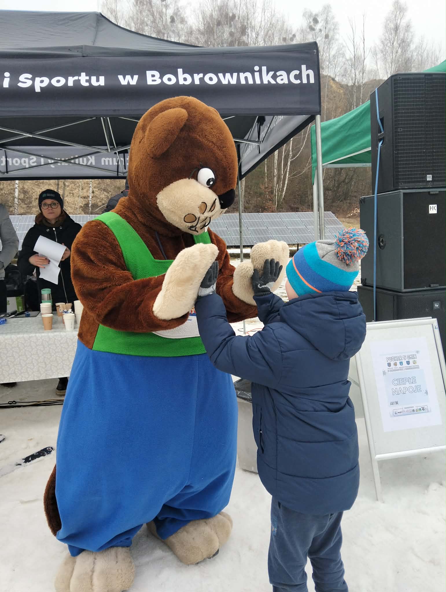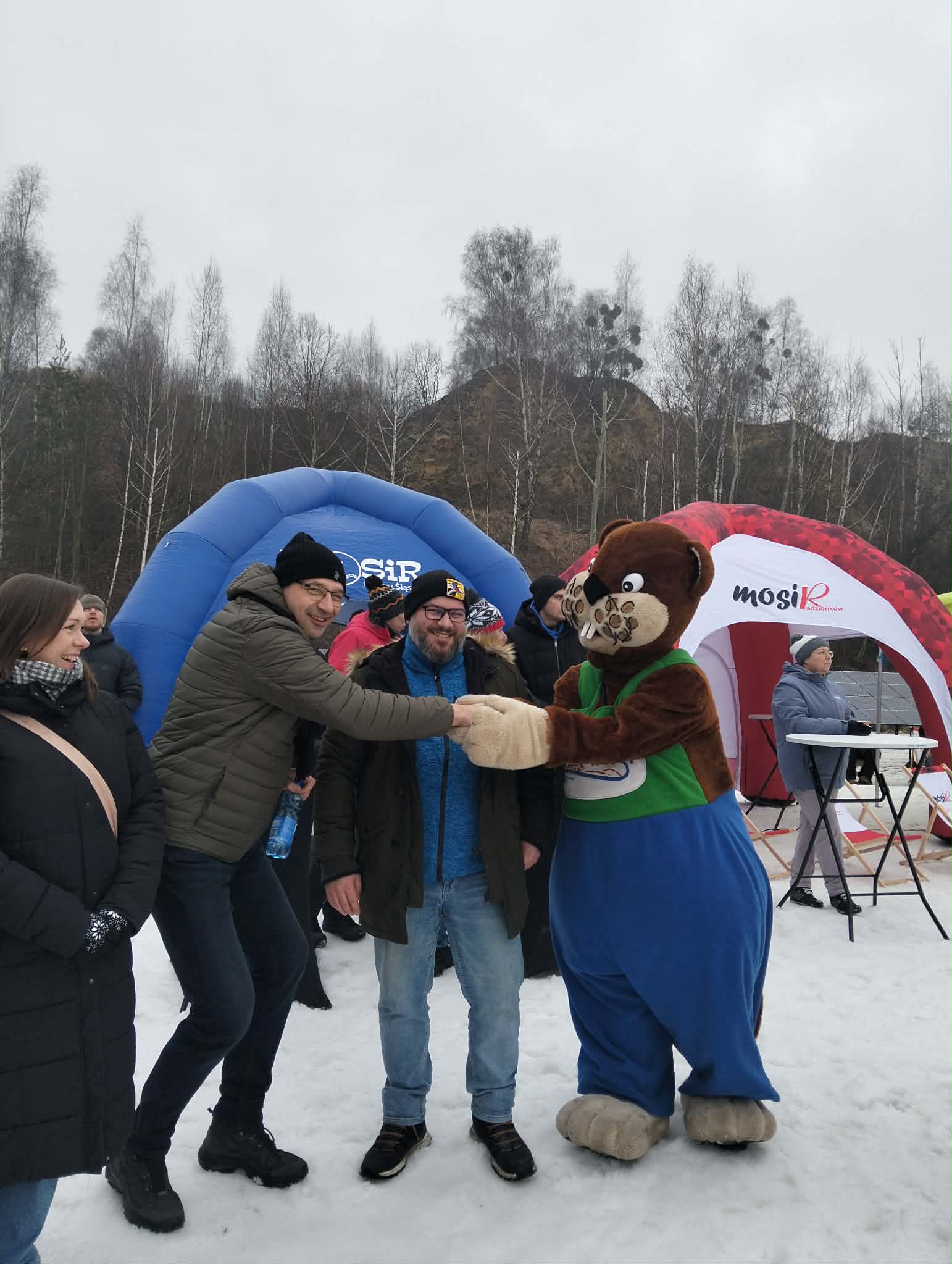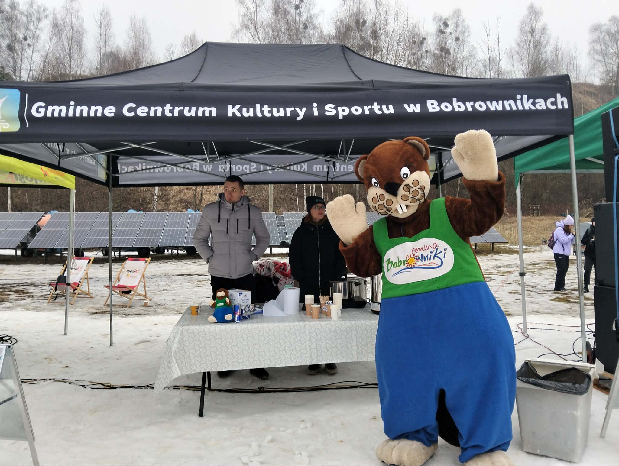 A nasz Gminny Boberek robił furorę i dopingował uczestników! Wszędzie było go pełno! Trochę zmarznięci, ale jesteśmy szczęśliwi!